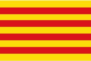 The colors of the flag of Catalonia have their roots in the coat of arms of the Crown of Aragon, which consists of a golden shield with four red stripes and a jeweled crown on top.  According to a legend from the fourteenth century, in 897, when Barcelona was under siege by the Moors, King Charles the Bald drew four red stripes with his blood-drenched fingers as an act of gratitude on the Count of Barcelona’s golden shield. Although scholars debate the legend’s validity, the red blood and golden shield depicted in the tale influenced the colors for the Crown of Aragon’s coat of arms.  The red and golden colors are used in the flags of four of Spain’s autonomous communities: Catalonia, Aragon, the Balearic Islands, and Valencia.