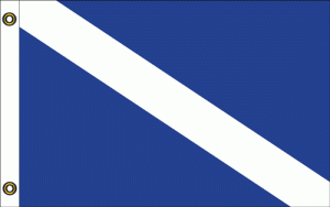 The Guest Flag is a blue rectangular flag with a white diagonal stripe. This flag is used to indicate that the owner is not aboard, but rather a guest of the owner is sailing the yacht. If the owner is aboard with a guest, this flag is not flown.