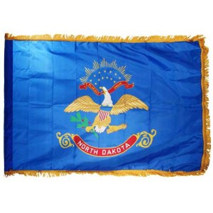 Kansas’ state flag was adopted on May 21, 1927. It had been flown at Fort Riley for the first time to honor the troops and the Kansas National Guard. The flag is a navy blue and has the state seal emblazoned in the middle. This seal depicts the rising sun in the East while life, of covered wagons, livestock, and farming, go on in the left hand corner and below. In the sky are 34 stars, each symbolizing a state at the time the seal was created during Kansas’ entry into the Union. Above the stars is a gold ribbon, reading Ad Astra Per Aspera, the state’s motto, meaning “to the stars through difficulties”. Underneath the state seal is the word “Kansas” in yellow and atop the seal is a sunflower sitting on a twisted blue and gold bar. This bar is said to symbolize the Louisiana Purchase in which the land Kansas was in was also acquired from. The sunflower is also Kansas’ state flower.