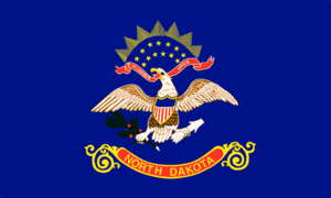 North Dakota’s state flag was adopted in 1911, about 22 years after the state’s admission into the Union. The flag was introduced by Colonel John. H. Fraine. The state flag is a dark blue with bald eagle in the center, holding an olive branch in its right talon and arrows in its left talon. The eagle is grasping a gold lined red ribbon in its beak, which reads E Pluribus Unum, which is Latin for “Out of one, many”. There are two symbols of the original thirteen territories on this flag: one is a shield of thirteen stripes on the eagle’s chest and thirteen yellow stars above its head, with a fan shaped design above the stars. Underneath the eagle is a small red scroll which says “North Dakota” and yellow scrolls swirling outside of it. In 1951, a state flag commission had been established to consider changing the state flag because it “too closely resembled the coat of arms of the United States of America and that the flag was not symbolic of North Dakota”. However, the legislation was rejected.
